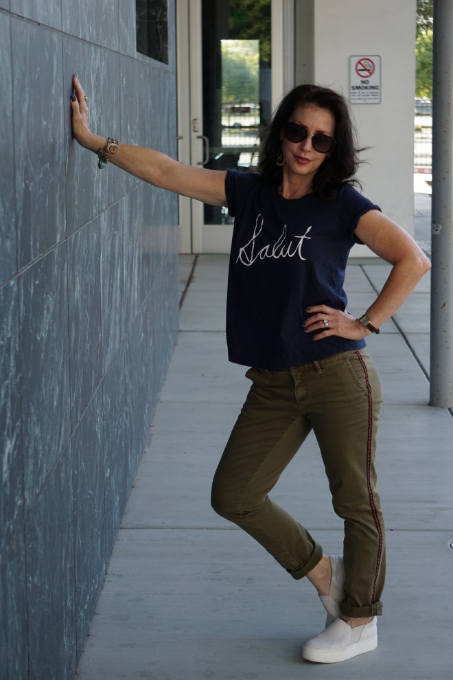 - Wear lightweight clothing in Fall colors/patterns. This season, think army green, navy or a pop of red.