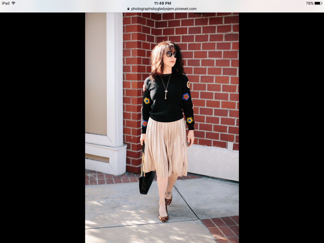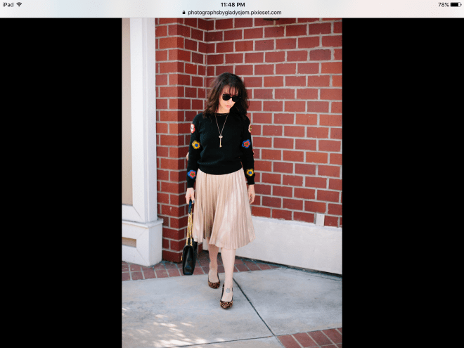 Sweater and pleated skirt: Â Anthropologie