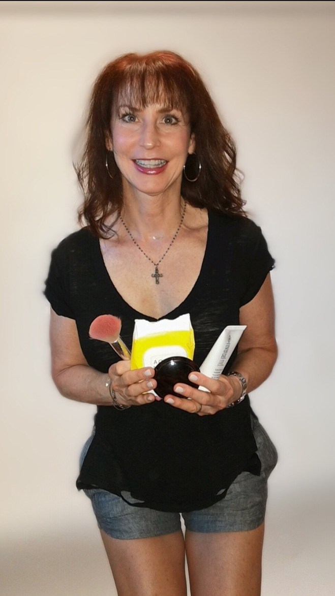 Simply use the makeup remover cloth (see a couple favs above) to remove old sunscreen and/or foundation. Reapply tinted moisturizer. (I really love Revercel brand because it’s super emollient, and has a light and lovely tiny with great broad spectrum coverage.) Next, simply brush a little color on your cheeks, and you’re out the door! Now, I should mention that because I always wear sunglasses outdoors, I do not remove and reapply my eye and brow makeup. If I feel like I need a little extra SUNSCREEN, I will gently dab a little around my eyes, on top of my eye make up. I never touch my mascara or brow once I have make up on. I like to keep it simple.