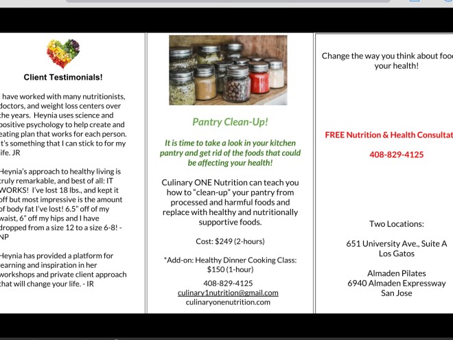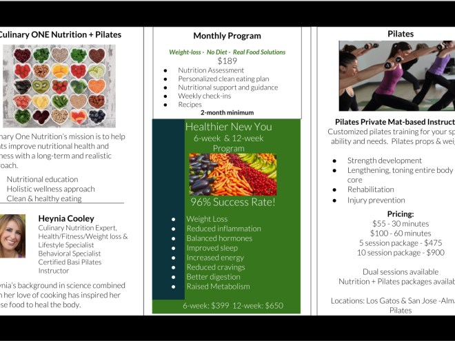 HC: Yes!! I offer monthly nutritional counseling, as well as 6- and 12- week personalized nutrition and fitness programs. My programs are about realistic and sustainable lifestyle changes without dieting. As a certified Pilates instructor, I love to incorporate exercise and fitness into my programs. Also, I will be co-hosting some wonderful and informative events in July and August; in July, I will be partnering with C2 California Clean Skincare, Pelo Salon, Freedom Deodorant, and Kavella Hair Products for our final Spring Clean Your Health class in Los Gatos. On August 25th, I will be hosting an event in San Jose, Strengthening Your Core From the Inside Out, in partnership with Almaden Pilates and Bevy Produce! I would love to see you and your readers at one of my workshops, and/or sign up for one-on-one lifestyle and nutritional counseling.